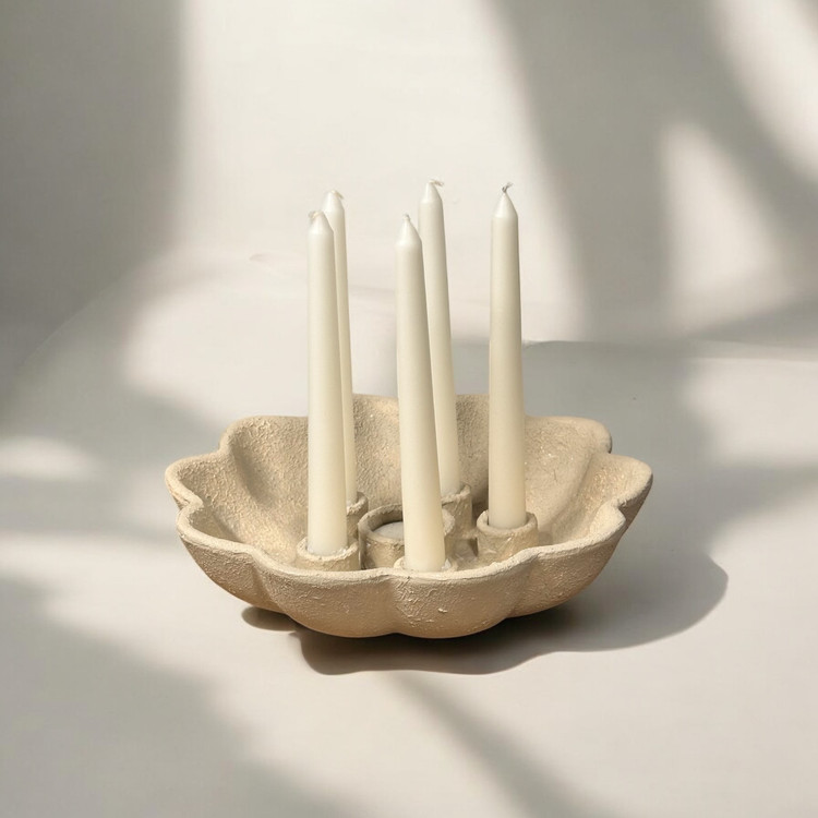 ظرفیت: ۵ شمع قلمی + ۱ شمع وارمری