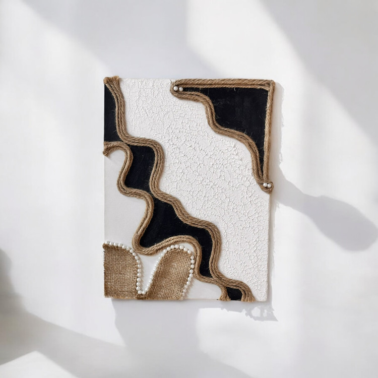 تابلو ترکیب مروارید، گچ و کنف – جلوهای از هنر دستساز