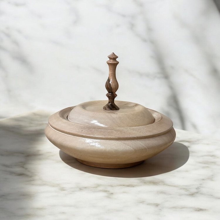 شکلات خوری دستساز از چوب گردو، ترکیبی از هنر خراطی سنتی و طراحی مدرن که جلوهای خاص و گرم به میز پذیرایی شما میبخشد. بافت طبیعی چوب و ظرافت تراشکاری، این ظرف را به یک انتخاب منحصربهفرد برای علاقهمندان به دکوراسیون چوبی تبدیل کرده است.