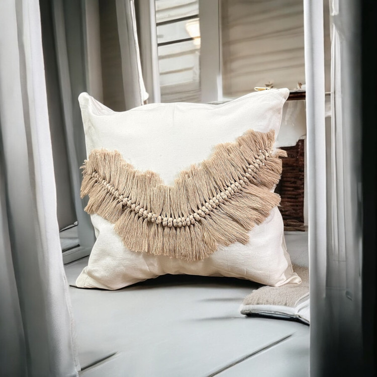 لطافت، هنر و ظرافت را به فضای خود بیاورید! کوسنهای دستبافت مکرومه ما با عشق و دقت گرهخوردهاند تا گرما و اصالت را به دکوراسیون شما هدیه دهند.