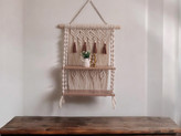 با تلفیق چوب طبیعی و بافت مکرومه مدرن، این شلف نه تنها جایگاهی برای وسایل شماست، بلکه یک المان دکوراتیو زیبا برای دیوار شما محسوب میشود.